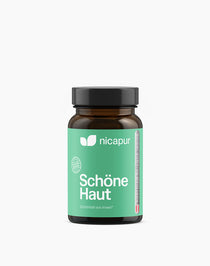 Schöne Haut: Bei diesem Nahrungsergänzungsmittel aus dem Hause nicapur® handelt es sich um 30 Kapseln voller Vitamine, Mineralstoffe und Kamillenblüten-Extrakt, um u. a. die Regeneration deiner Hautzellen zu unterstützen.
