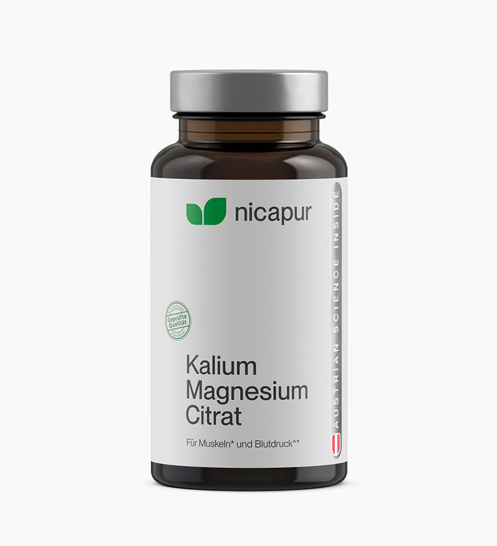 Kalium Magnesium Citrat: In den 60 Mineralstoffkapseln stecken Kalium und Magnesium für einen stabilen Blutdruck. Gemeinsam unterstützen sie die Funktion deines Nervensystems und deiner Muskeln.