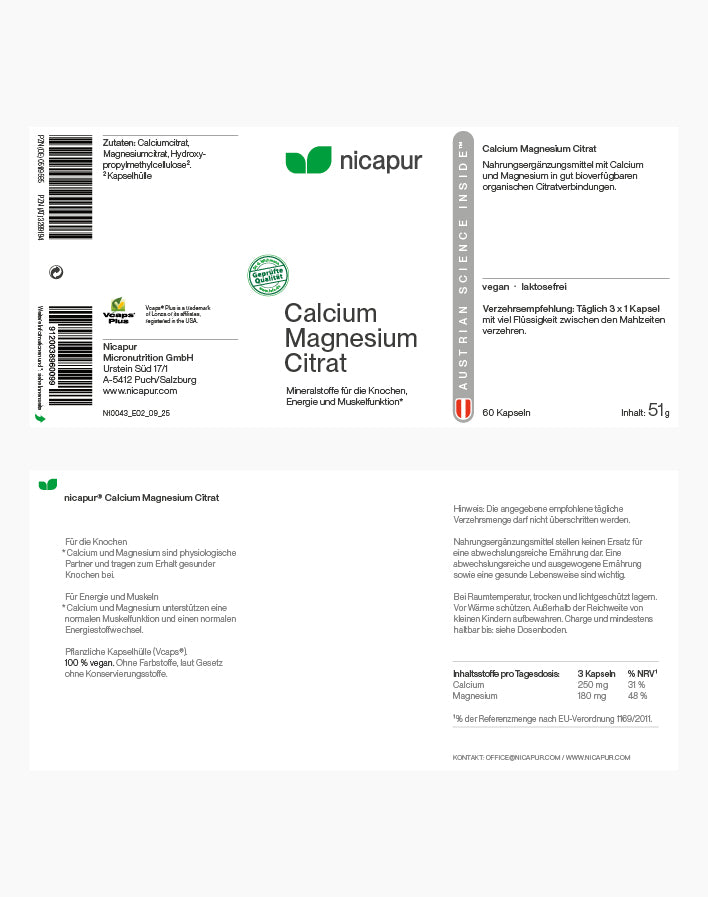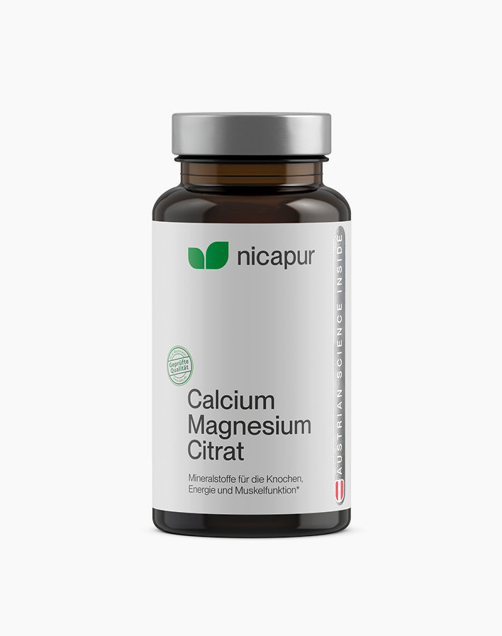 Calcium und Magnesium in gut bioverfügbaren organischen Citratverbindungen.