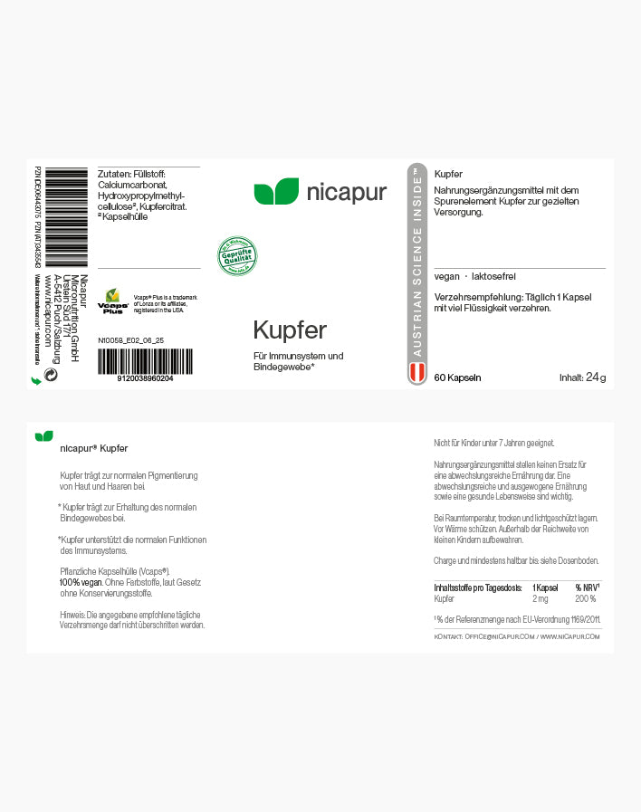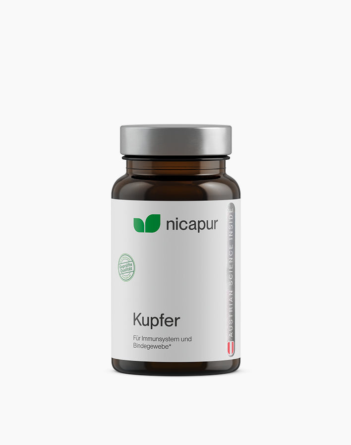 Kupfer ist ein Nahrungsergänzungsmittel mit dem Spurenelement Kupfer zur gezielten Versorgung.
