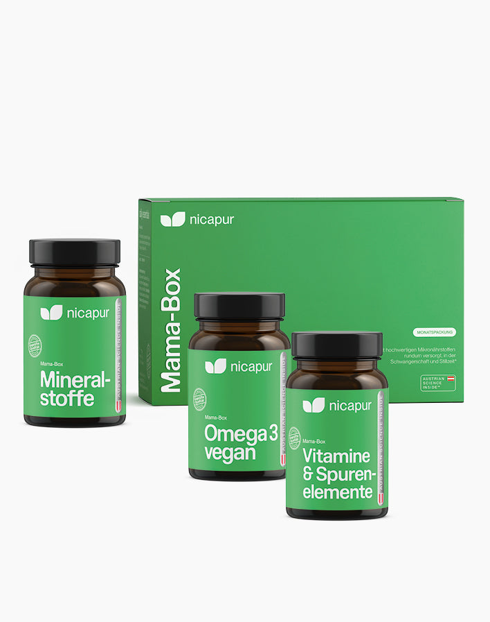 NICApur® Mama-Box ist speziell für deine Bedürfnisse bei Kinderwunsch, in der Schwangerschaft und Stillzeit entwickelt worden und besteht aus den 3 Produkten: