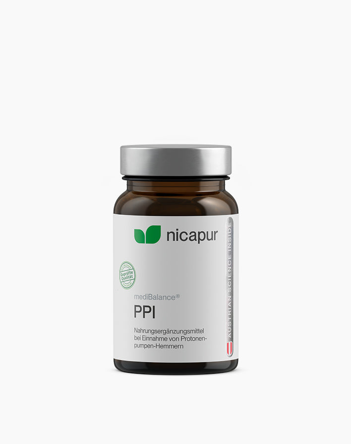 mediBalance® PPI ist ein Nahrungsergänzungsmittel mit Vitaminen und Mineralstoffen.
