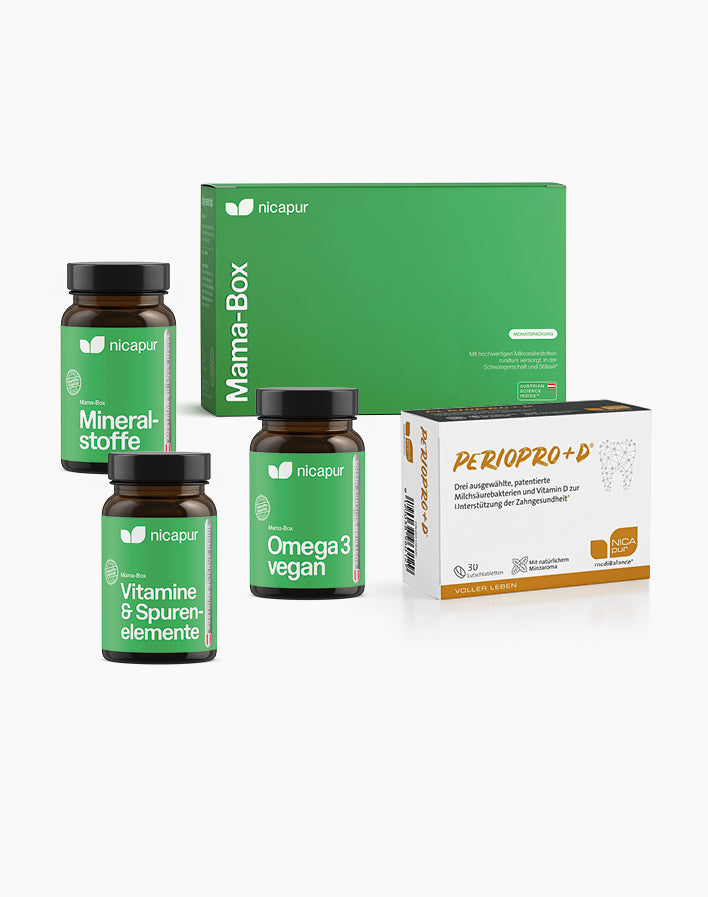 Mit dem nicapur® Schwangerschafts-Bundle versorgst du dich und dein Ungeborenes optimal und unterstützt deine Mundgesundheit während der hormonellen Veränderungen. Häufig ist das Zahnfleisch während der Schwangerschaft empfindlich und anfälliger!