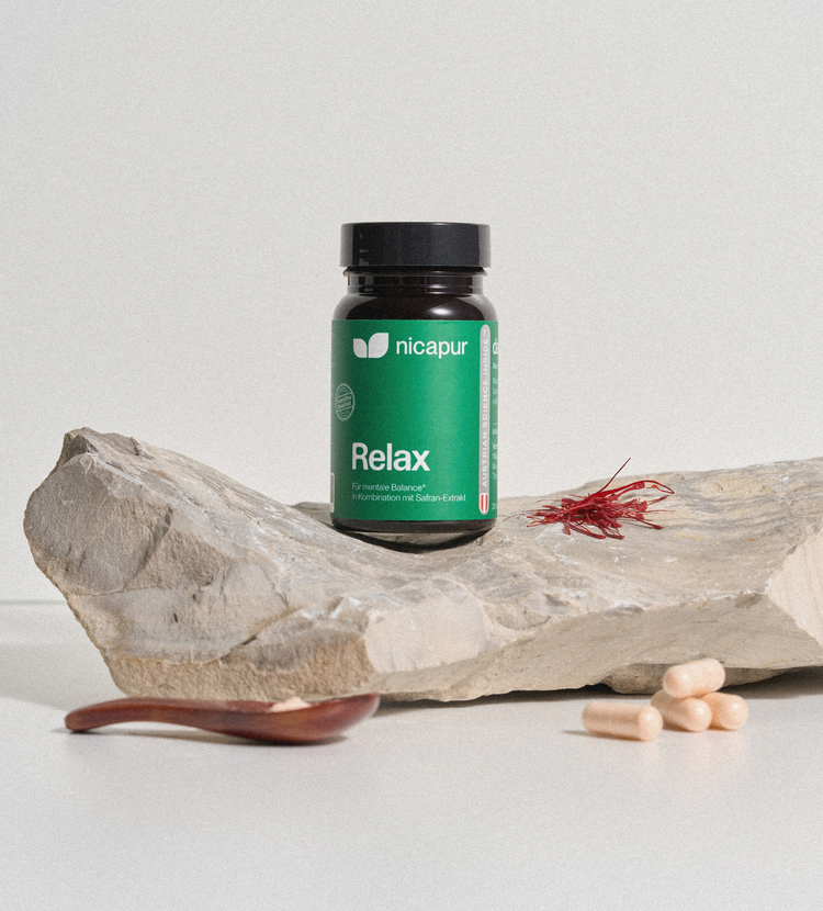 Ausgewählte Probiotika können über die Darm-Hirn-Achse das Zusammenspiel von Darm und Psyche unterstützen. In Kombination mit hochwertigem Safran-Extrakt wurde die Rezeptur gezielt entwickelt, um das innere Gleichgewicht zu fördern und zu einer positiven Stimmung sowie mehr Entspannung im Alltag beizutragen.
