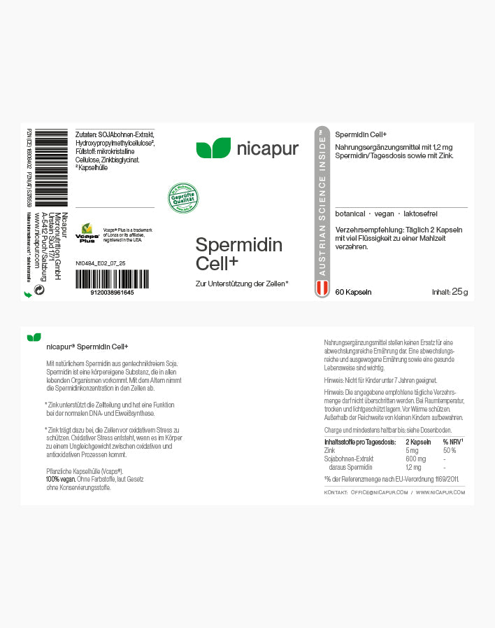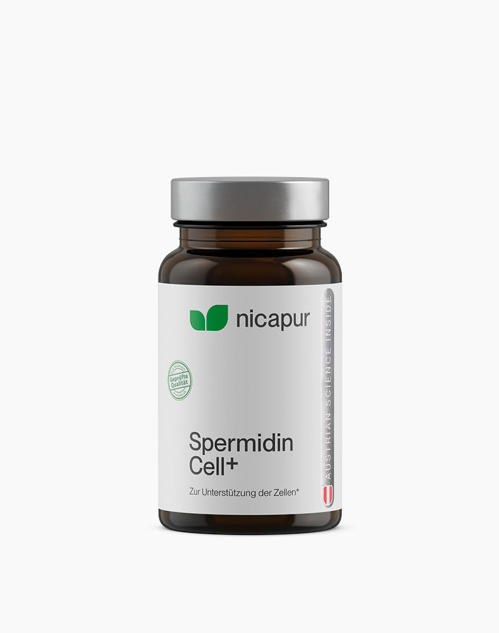 NICApur® Spermidin Cell+ ist ein Nahrungsergänzungsmittel mit 1,2 mg Spermidin/Tagesdosis sowie mit Zink.