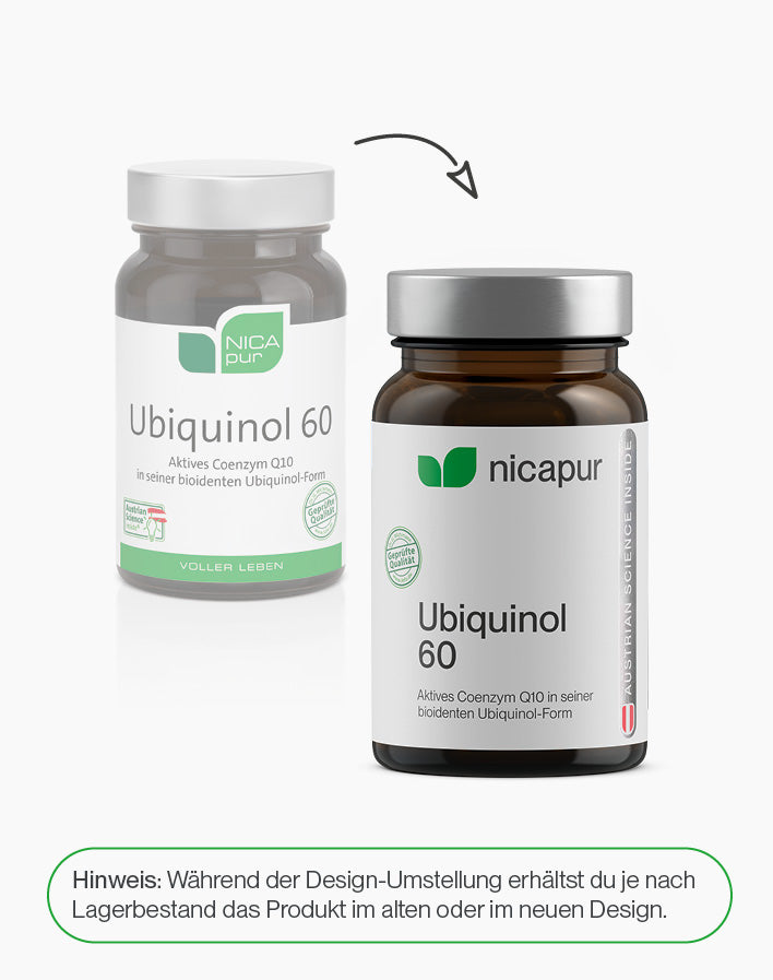 Ubiquinol 60 ist ein Nahrungsergänzungsmittel mit Coenzym Q10 in der sofort verfügbaren aktiven Ubiquinol-Form.