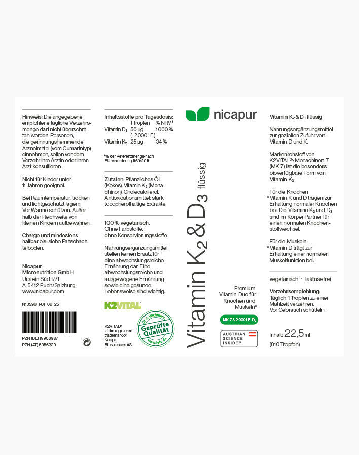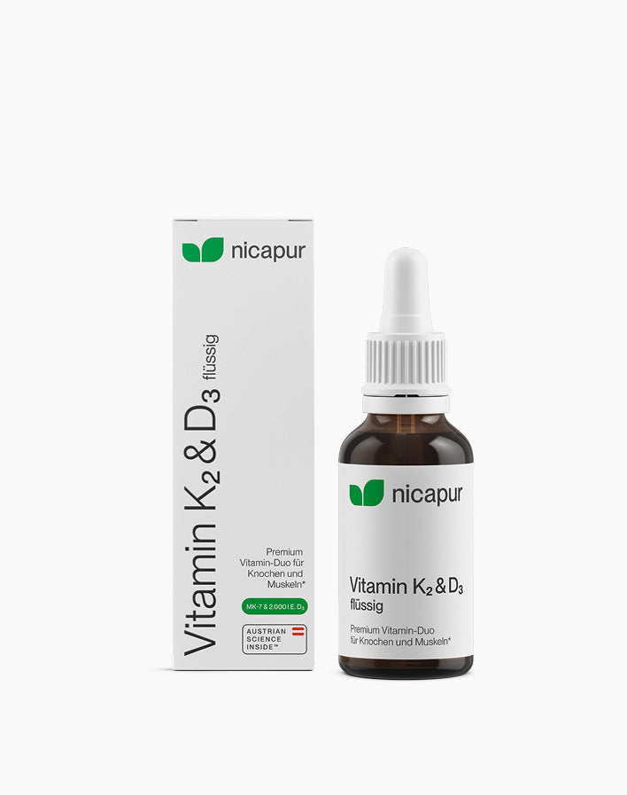 • Die Vitamine K2 und D3 sind im Körper Partner für einen normalen Knochenstoffwechsel.