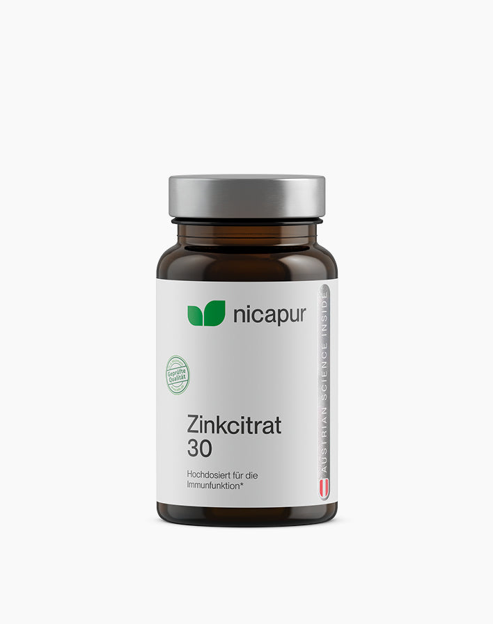 Zinkcitrat 30 ist ein Nahrungsergänzungsmittel mit hohem Anteil des Spurenelements Zink in der organischen Citratverbindung zur gezielten Zinkversorgung.